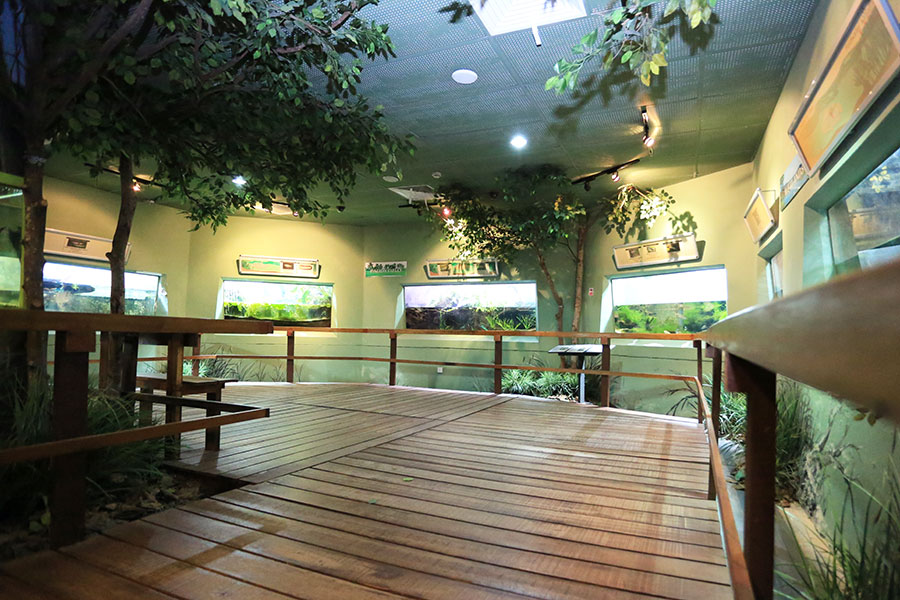 The aquarium not only displays fishes that are commonly seen in the Malaysian rivers but it also exhibit rare and endangered species such as crabs, aquatic insects and aquatic flora as part of the freshwater aquatic system.